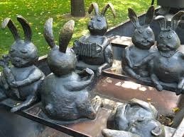 Это происходит по причине активного натирания туристами Музеона бронзовых ушек «на удачу». В результате органы слуха зайцев отваливаются и ежегодно нуждаются в реставрации.