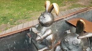 К концу сезона этот памятник, созданный Александром Таратыновым по строкам стихотворения Некрасова, лишается важных частей – зайчата остаются без ушей.