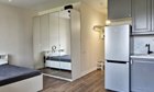 Встроенная кухня под единой столешницей, шкафы с доводчиком. Душевая кабина с остеклением, просторный шкаф в комнате, двуспальная кровать. Можно сразу жить или сдавать.
